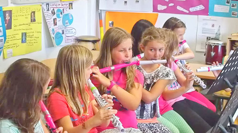 NUVO develops instruments that are ergonomically designed and attractively priced thanks to the innovative use of state-of-the-art materials and production methods. This allows you to easily and cost-effectively provide entire school classes with NUVO's functional musical instruments. You will find many video examples of the first steps playing together in music class concerts.