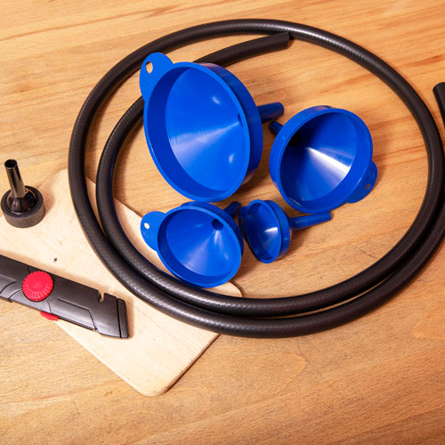 Purchase of a hose piece (approx. 1m) in length and a commercially available funnel